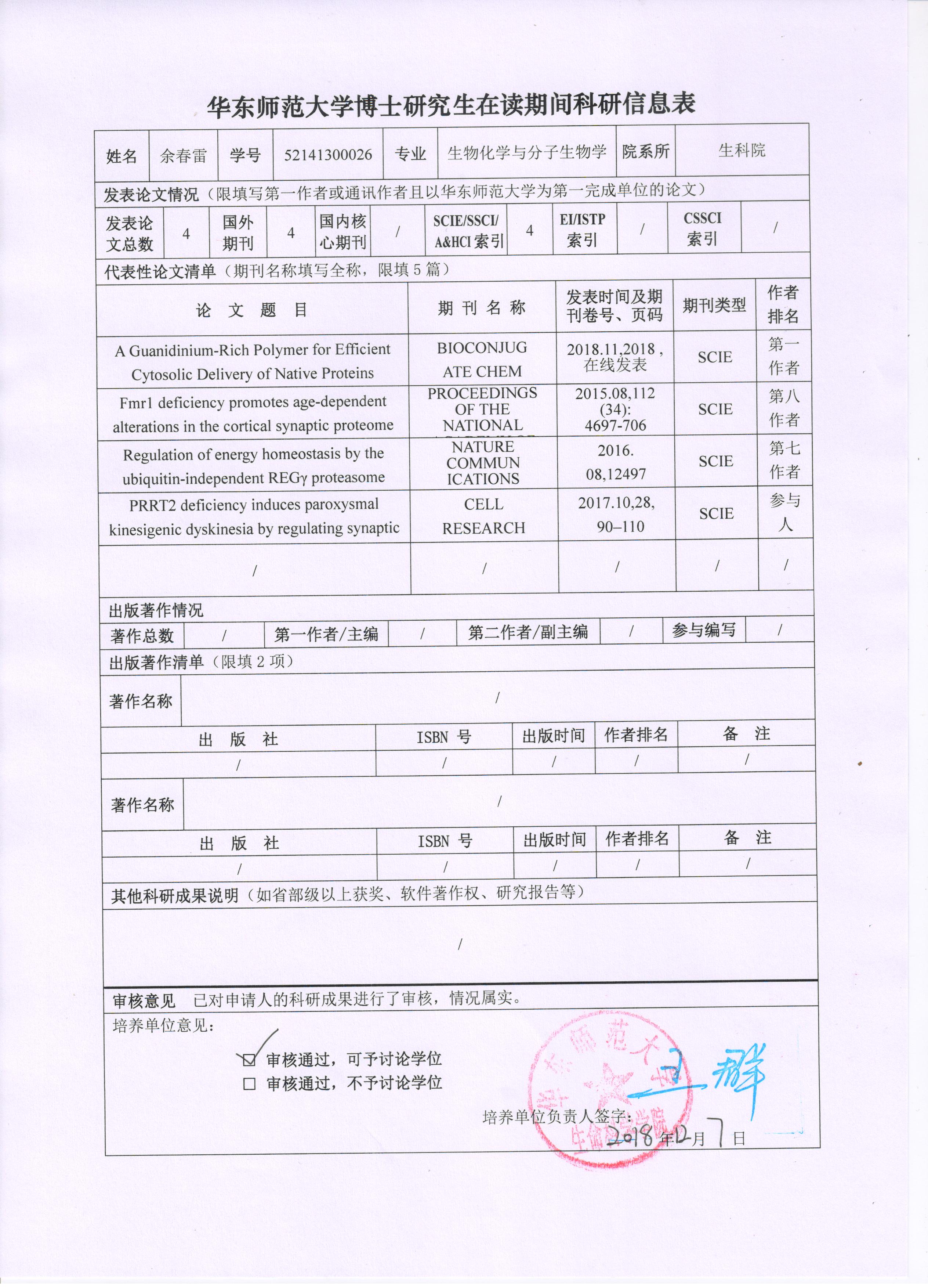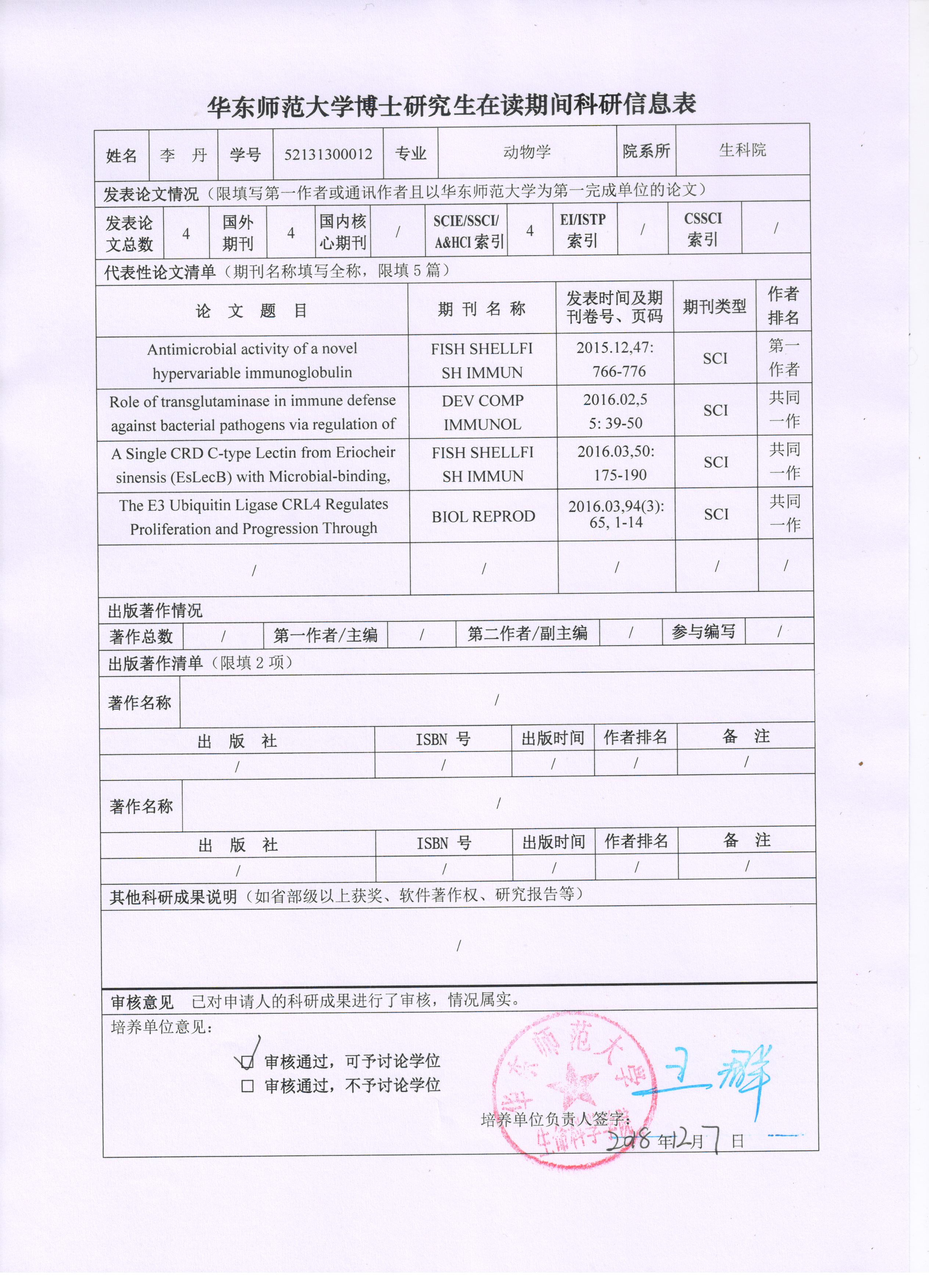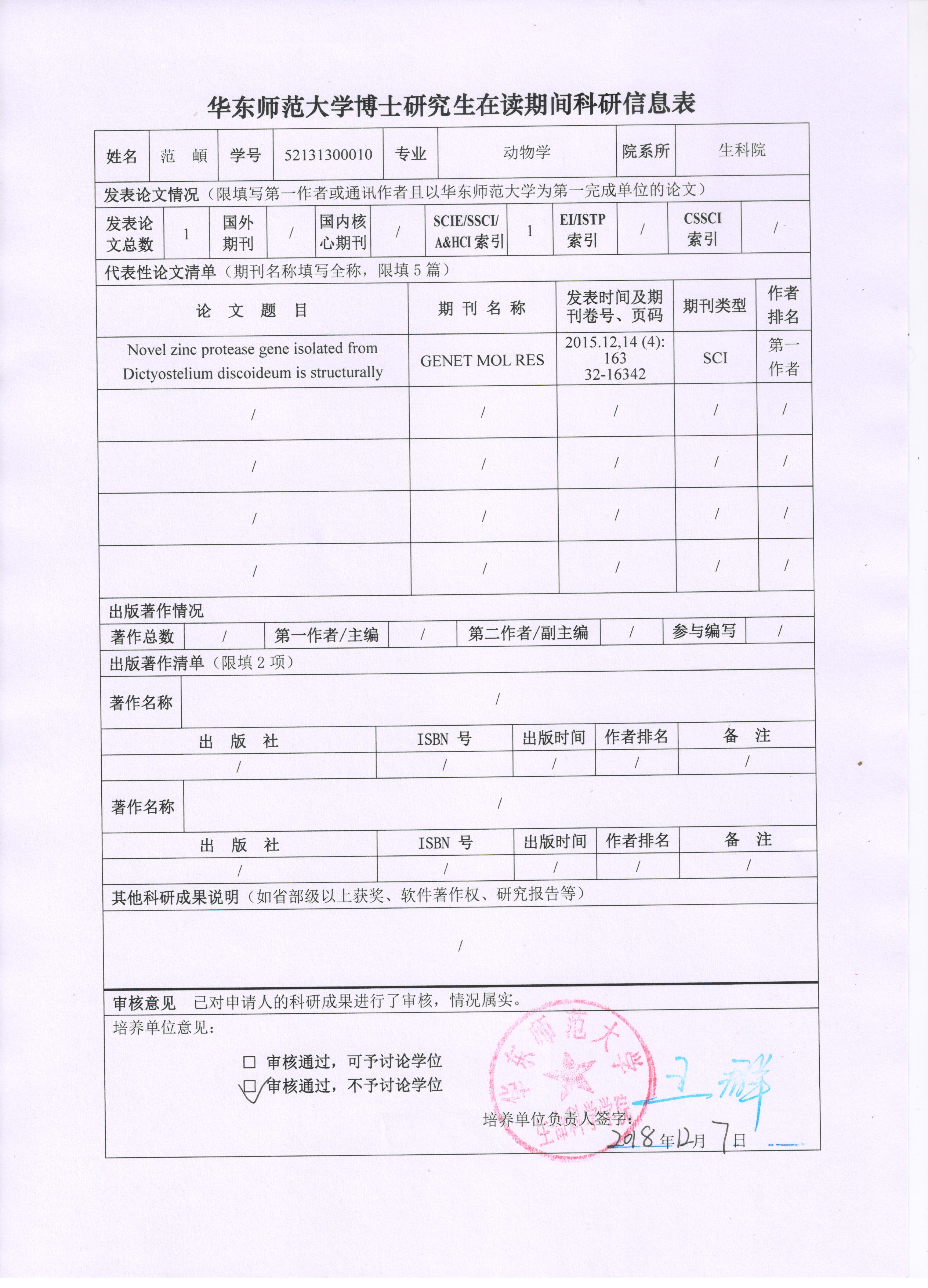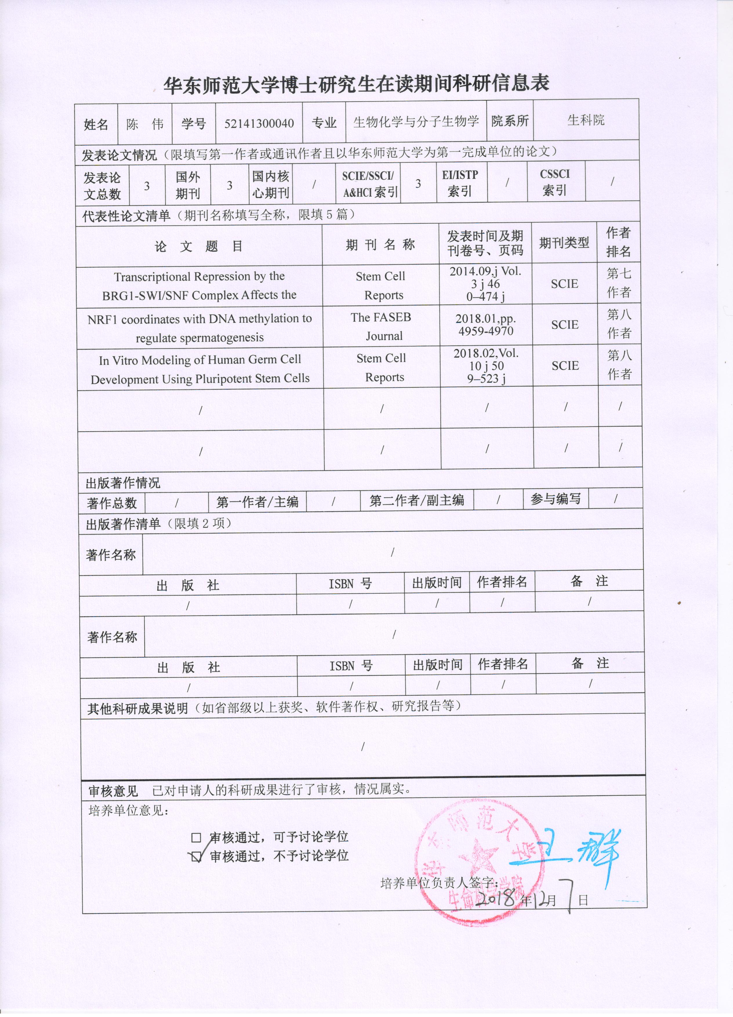 2018-2019年度第一学期博士研究生在读期间科研成果公示