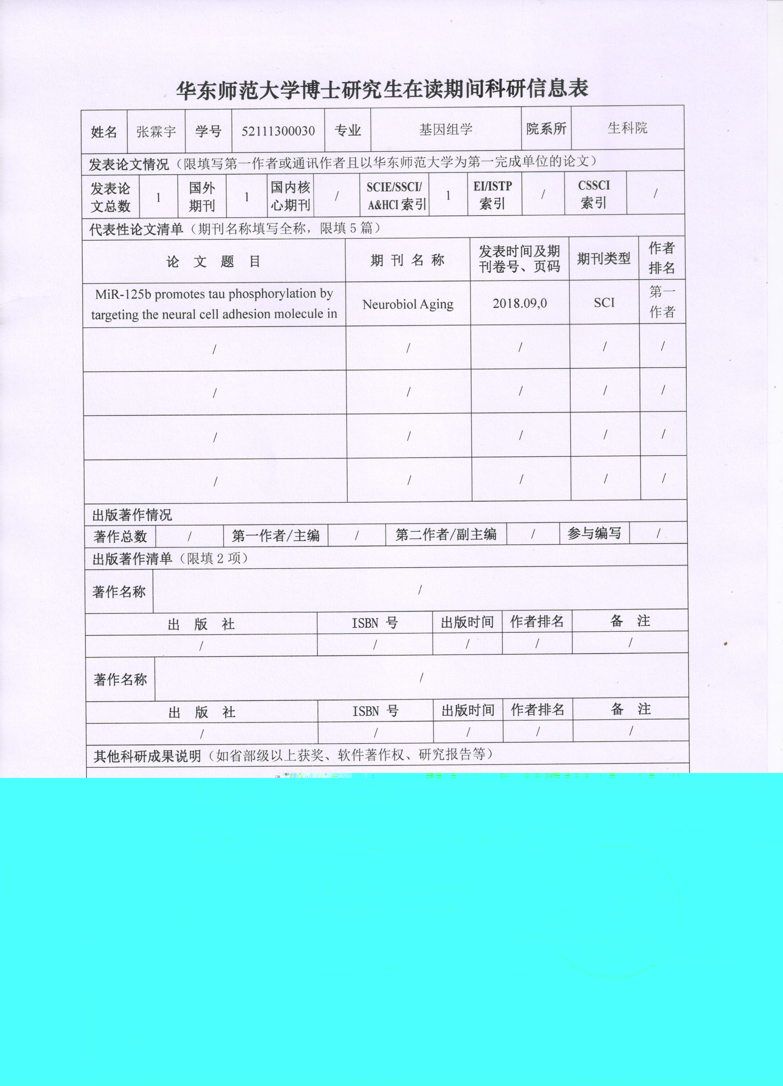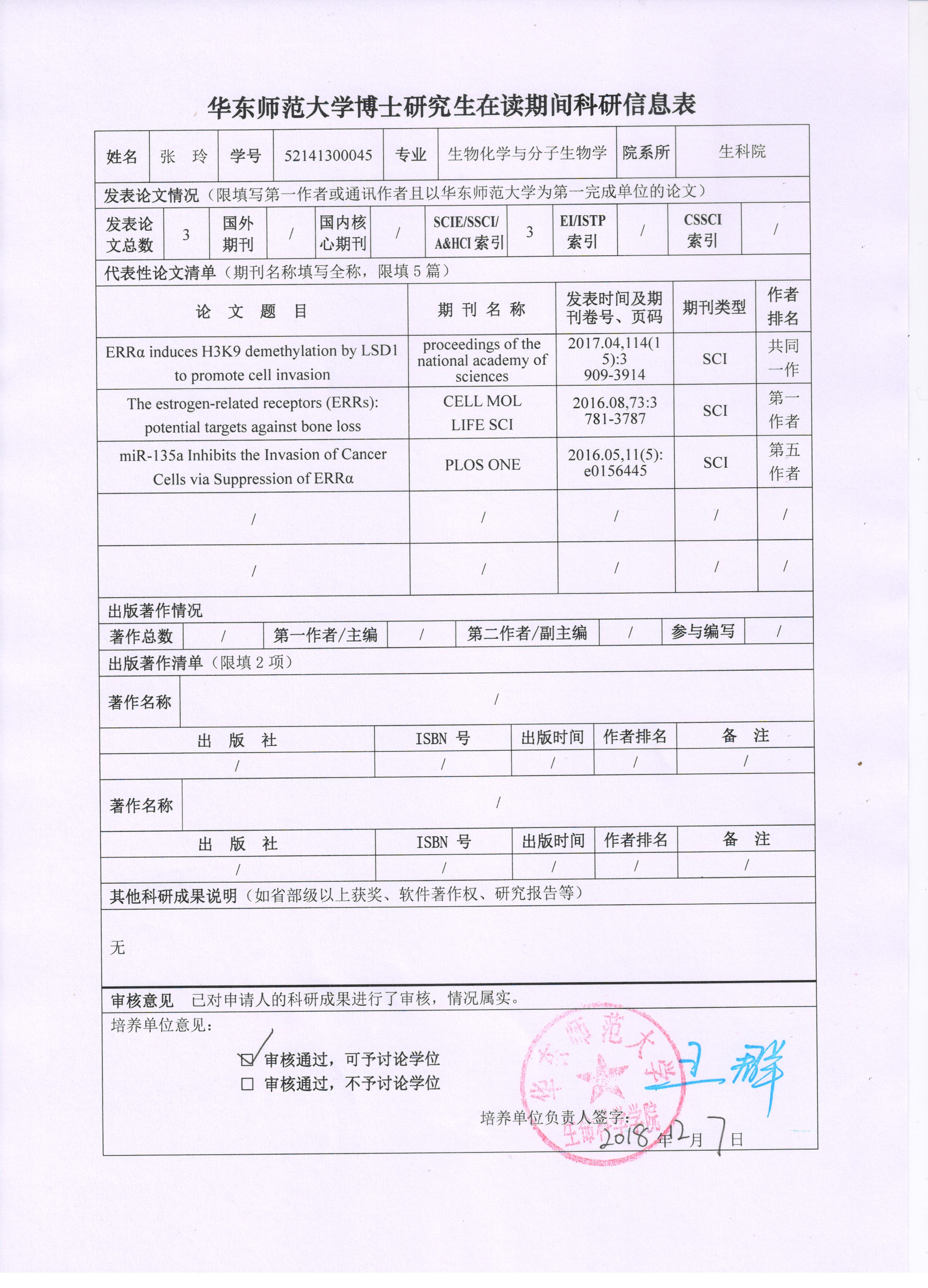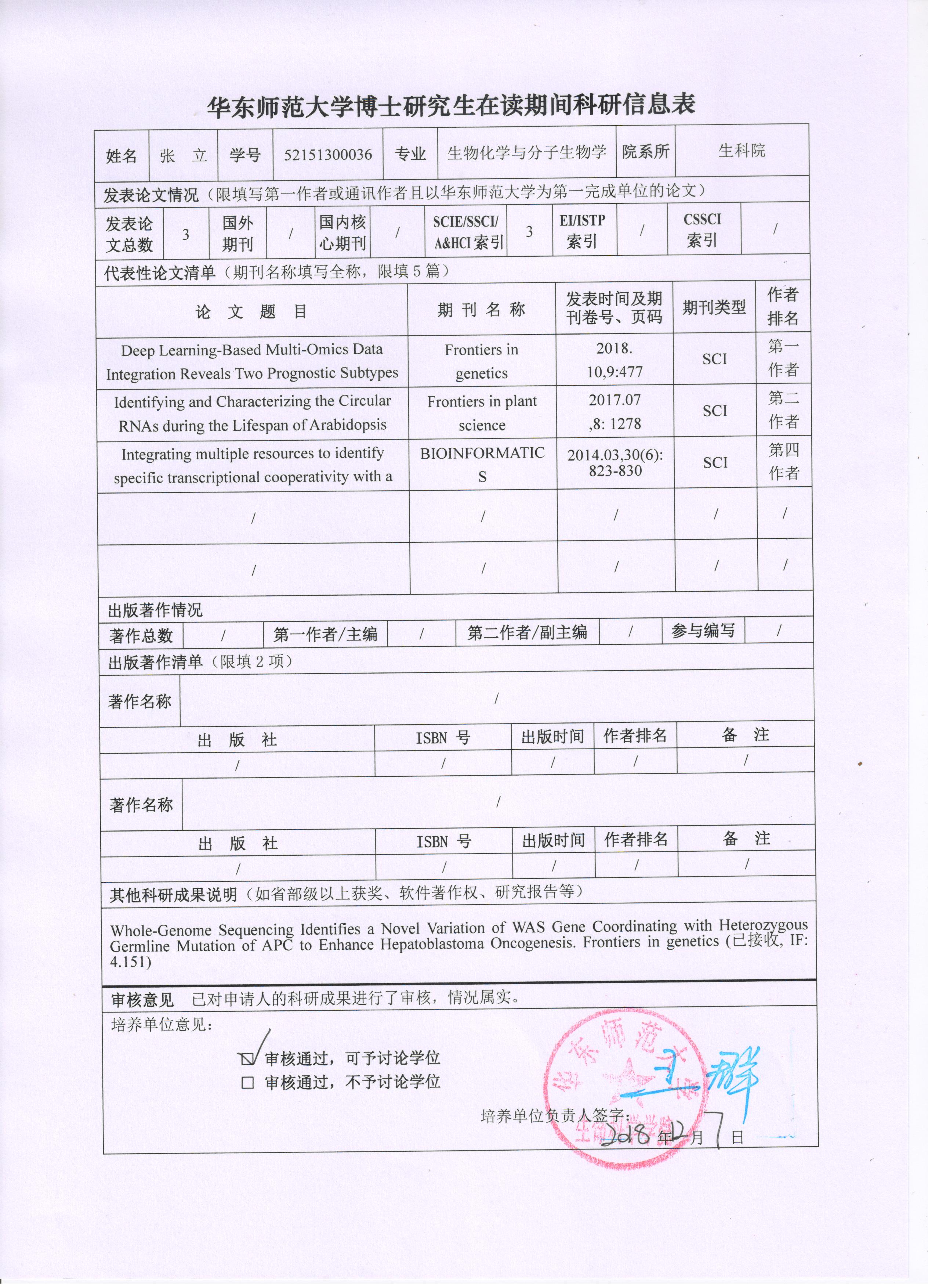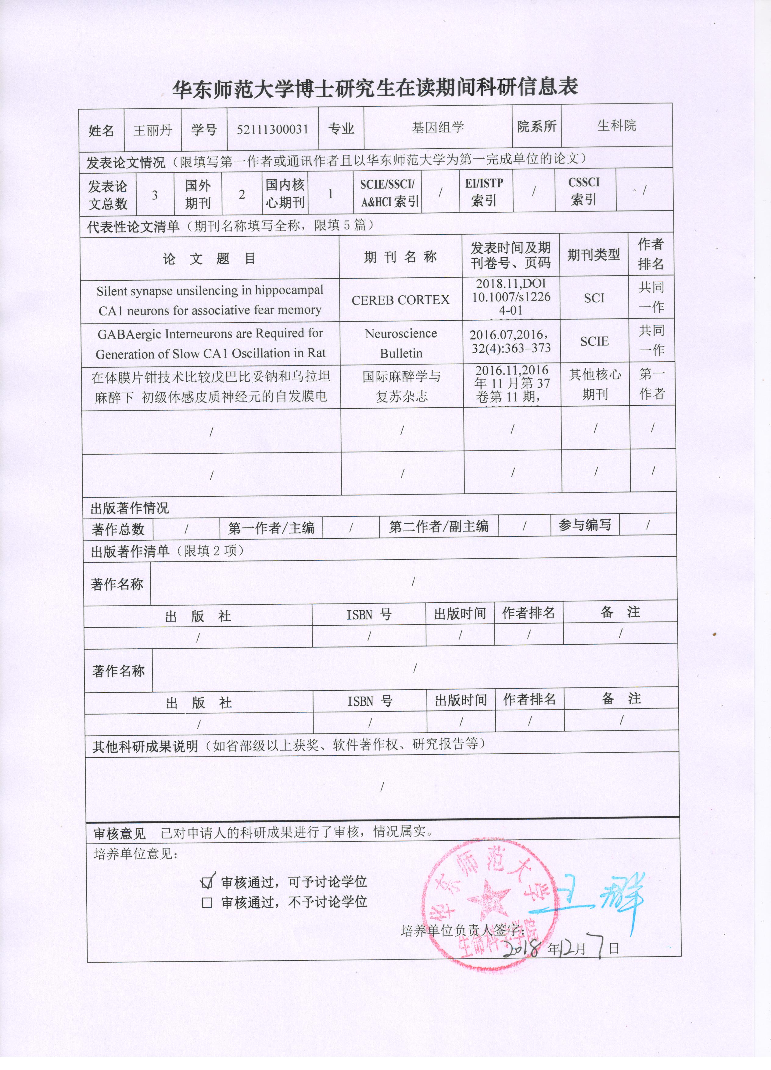 2018-2019年度第一学期博士研究生在读期间科研成果公示