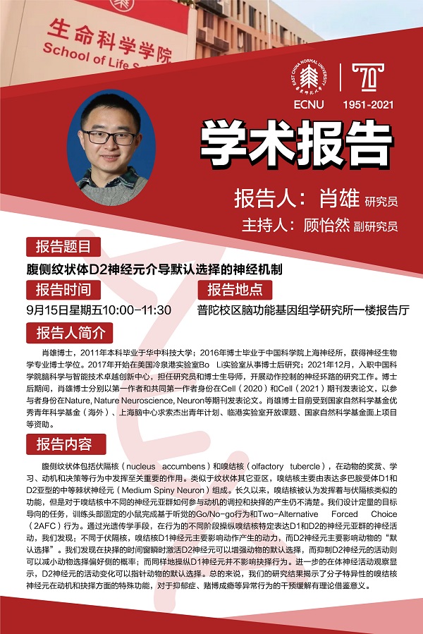 报告题目:腹侧纹状体D2神经元介导默认选择的神经机制