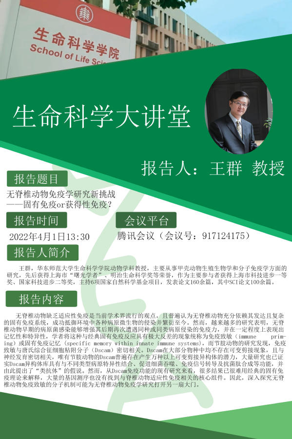 报告题目:无脊椎动物免疫学研究新挑战——固有免疫or获得性免疫?