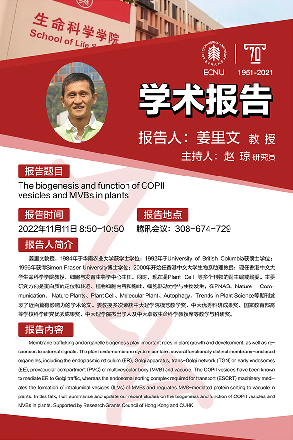 报告题目:The biogenesis and function of COPII vesicles and MVBs in plants