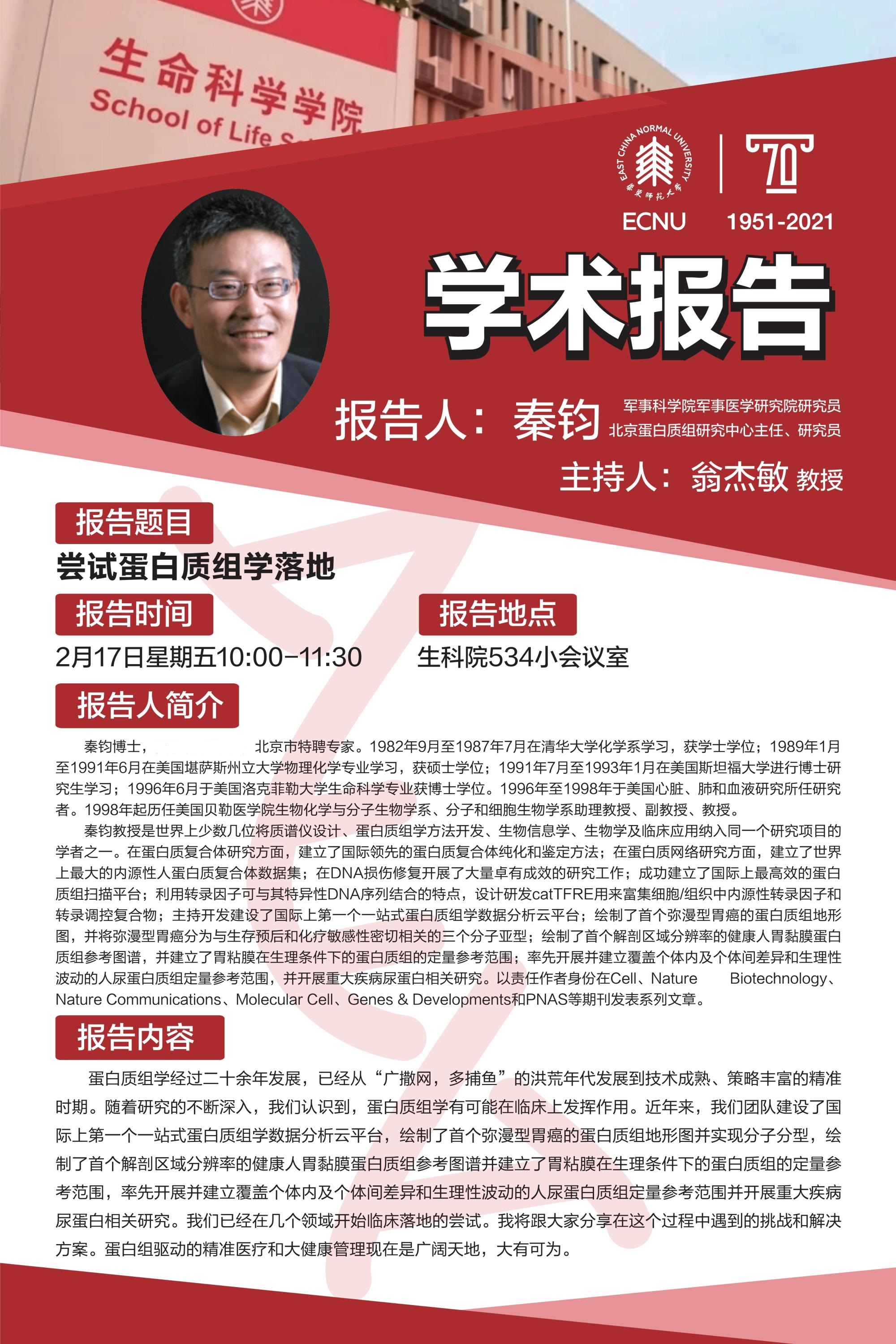 报告人:秦钧 军事科学院军事医学研究院研究员/北京蛋白质组研究中心主任、研究员