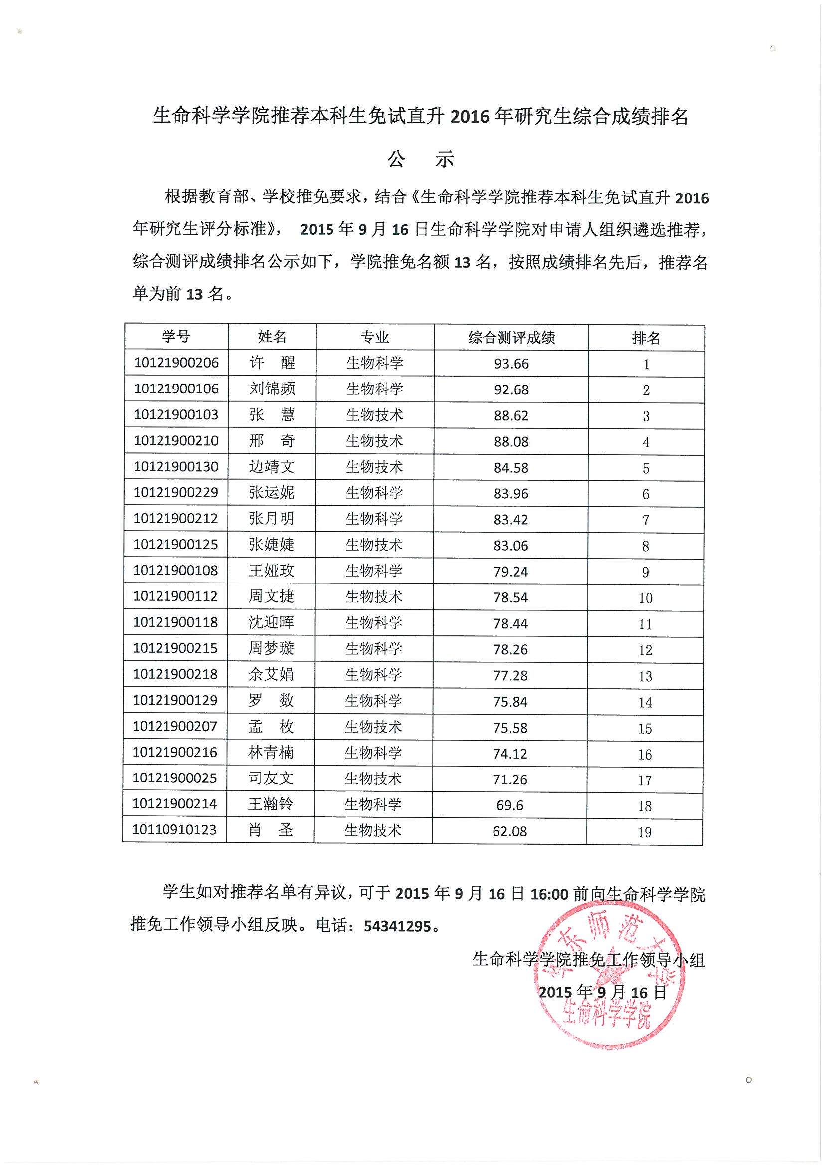 3200威尼斯vip推荐本科生免试直升2016年研究生综合成绩排名公示