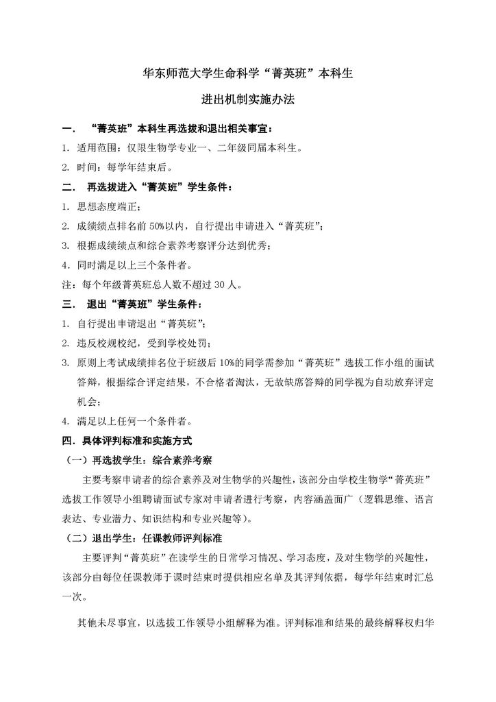 3200威尼斯vip生命科学“菁英班”本科生进出机制实施办法