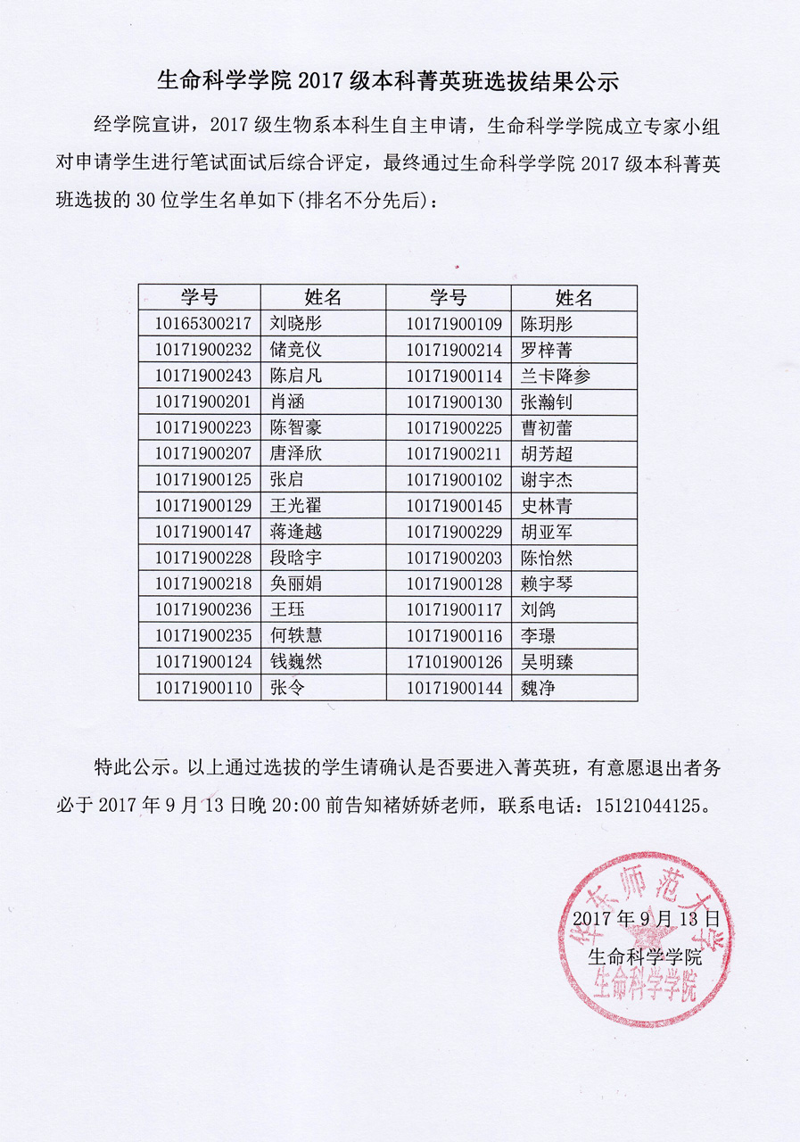 3200威尼斯vip2017级本科菁英班选拔结果公示