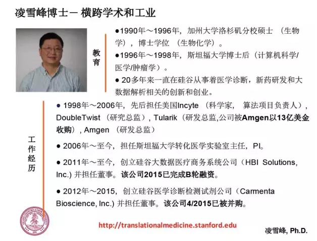 讲座嘉宾:Bruce Ling(凌雪峰)博士,斯坦福大学医学院转化医学实验室(Translational Medicine,School of Medicine )主任,PI