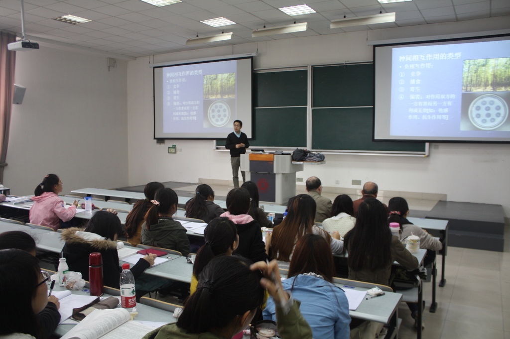 为了更好的提高生科院青年教师的凝聚力和发展潜力,学院青年教师联谊会、工会围绕学院中心工作,结合青年教师工作实际,以他们的教学工作为切入点,邀请了曾获得“优秀教学成果国家级优秀奖”、“高等师范院校教师奖一等奖”、“上海市高教精英”称号等多项奖励的、生科院退休教师马炜梁教授,以及学校终身教授,原生物系系主任、博士生导师顾福康教授作为专家,针对青年教师在教学活动中,面对的共性问题进行解析,从而提高青年教师职业素养并及时帮助他们解决在教学和科研中遇到的问题和困惑。两位专家和青年教师们首先观摩了生科院青年教师王正寰老师的《种群生态学》课程。王老师用生动幽默的语言讲解了种间竞争、竞争特征、种间竞争的数学模型等问题,并结合案例对种间竞争进行了重点分析。之后,两位专家和青年教师们针对王正寰老师的教学活动分别进行了点评和交流学习。“知识的传授、讲课语言和PPT的有机结合、适当使用国产教学案例、结合自己科研工作的进展、用自己对专业的热爱去感染学生、课堂外对学生的感染和影响,引领学生热爱专业,丰富教学内容,拓宽学生知识面的同时,培养学生树立正确的价值观、教师思想与人格魅力的散发等。” 专家和青年教师们纷纷从不同的角度点评了这堂教学课,并且发表了自己对提高青年教师教学意识的见解。老教授们勉励青年教师要以饱满的激情、宽广的视野、包容的胸怀、专注的精神,谋求教学、科学研究工作不断取得新突破,实现自己的发展和学院事业的发展。